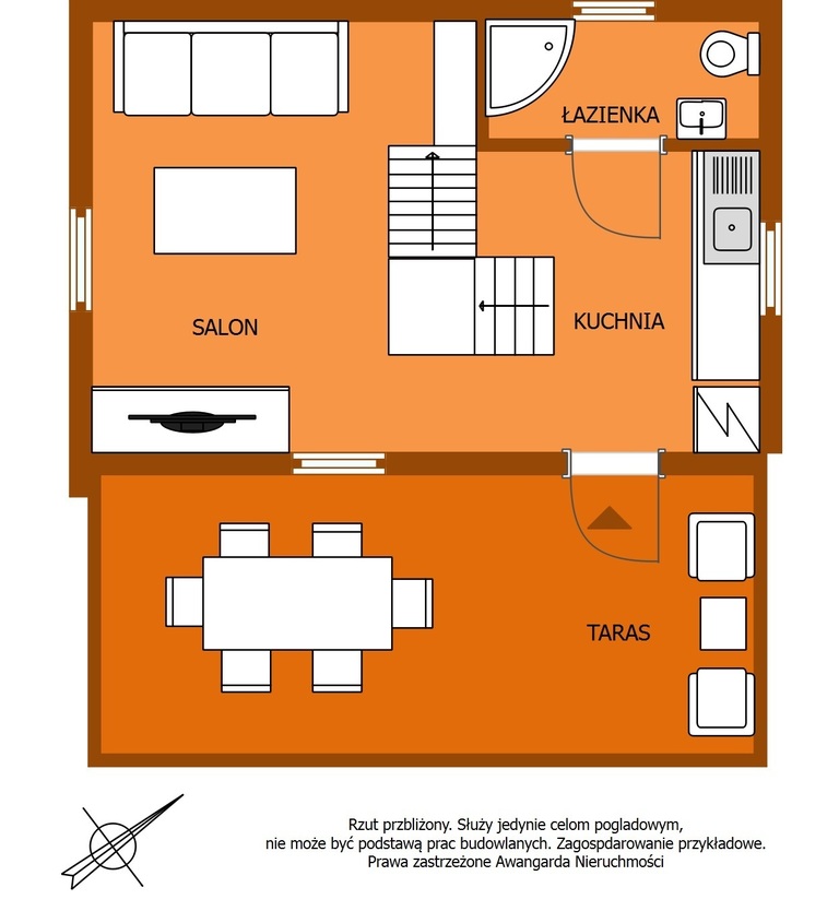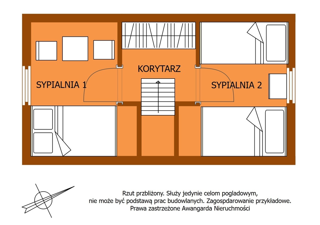 Poglądowy rozkład pomieszczeń przedstawiają załączone rzuty.
